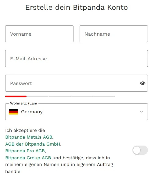 Registrierung bei Bitpanda